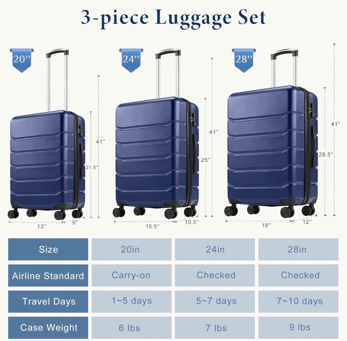 Suitcases Spinner Wheels Lightweight Expandable Travel Hard Shell Luggage with TSA Lock, Blue, Black, Pink, White, 3-PCS Sets Also available (20/24/28 Inch)